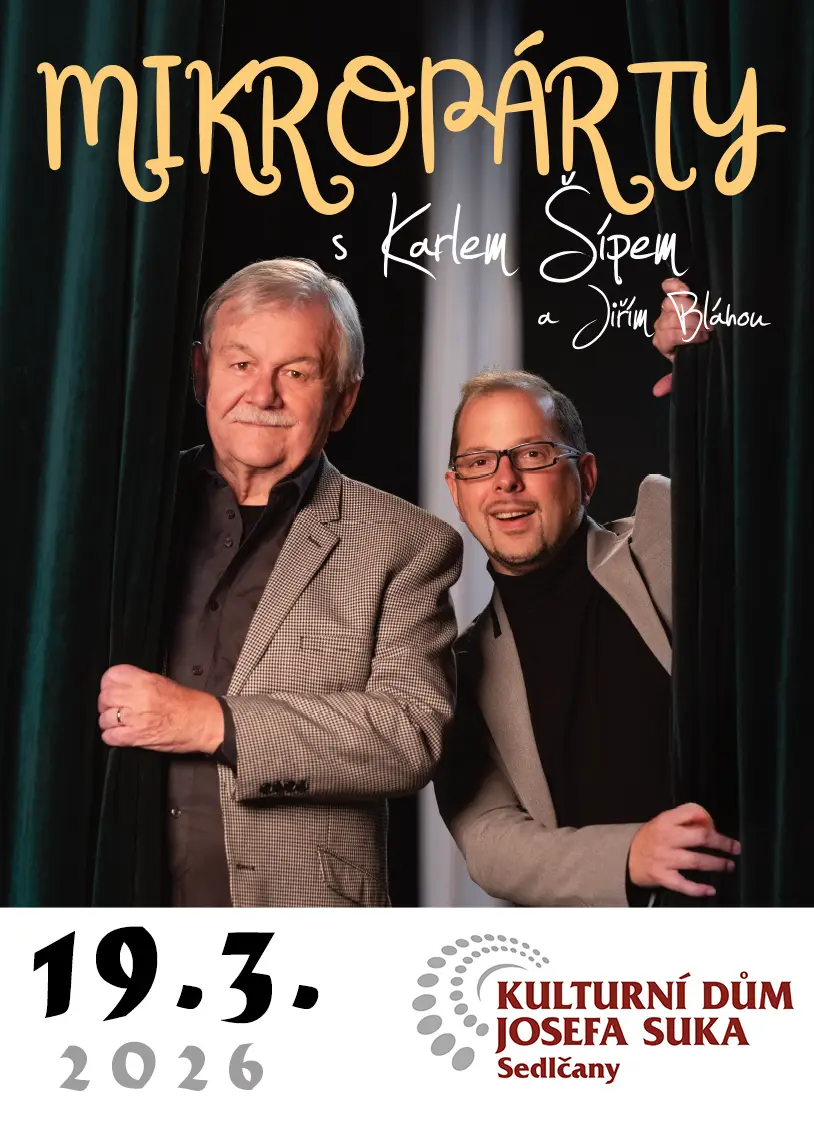 Mikropárty je zábavná talkshow. Karel Šíp odpovídá na otázky Jiřího Bláhy i diváků. Tento model spolupráce se jim osvědčil při mnoha vystoupeních po celé vlasti. A úspěšně!